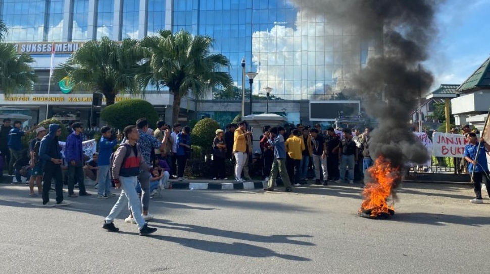 Dalam aksi mereka di depan Kantor Gubernur Kaltim, mahasiswa menyuarakan lima tuntutan utama: