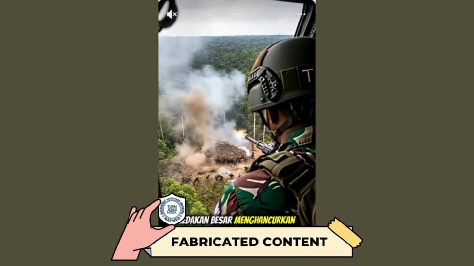 Klaim video “serangan markas KKB lewat jalur udara” adalah palsu (fabricated content).